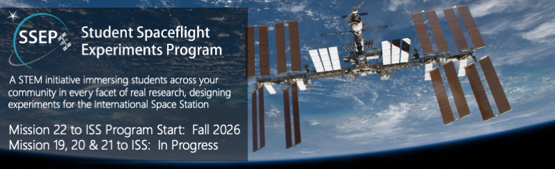 - New Flight Opportunity for School Districts and Colleges: Announcing Student Spaceflight Experiments Program (SSEP) Mission 21 to the International Space Station, Starting September 2, 2025 (5/21/2025)